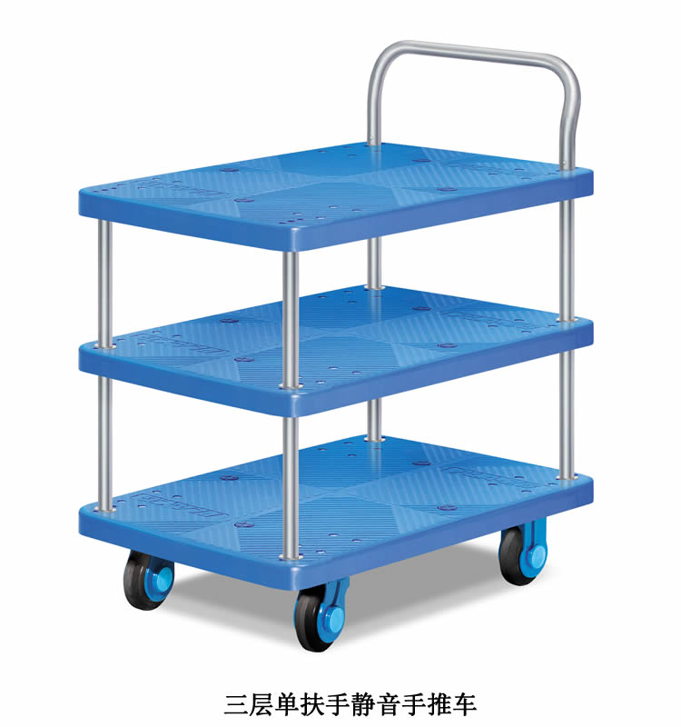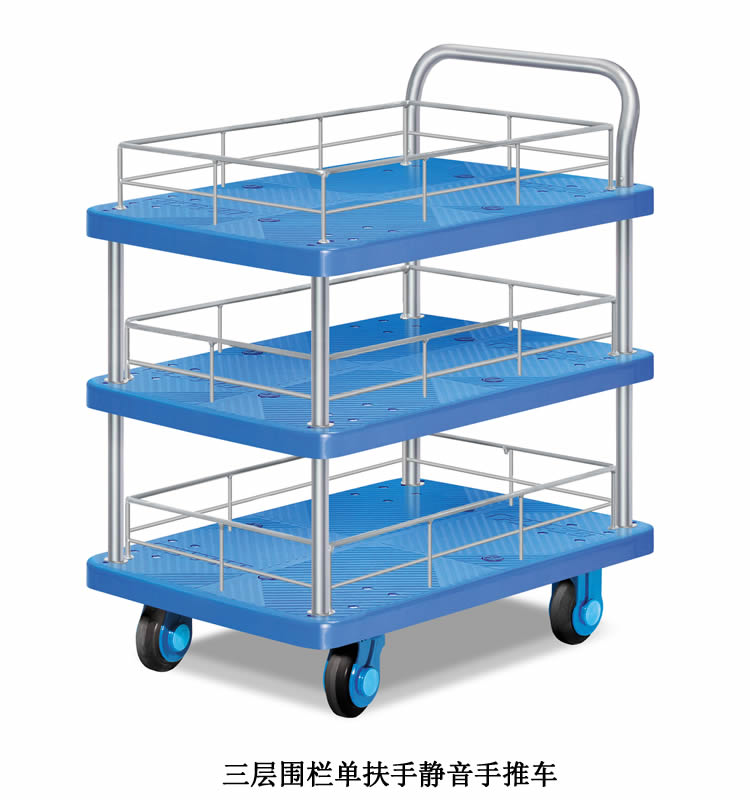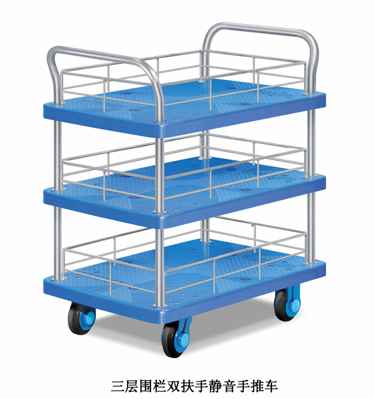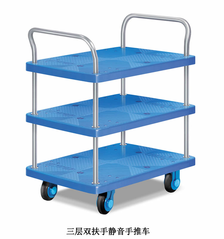 靜音手推車新穎、美觀,合成塑料的車體、腳輪運用,減輕了整車自重。靜音、傳動設計使手推車走行聲音小。適用于廠區(qū)、辦公樓、圖書館、賓館、餐飲業(yè)、物流運輸?shù)任锪习徇\行業(yè)。